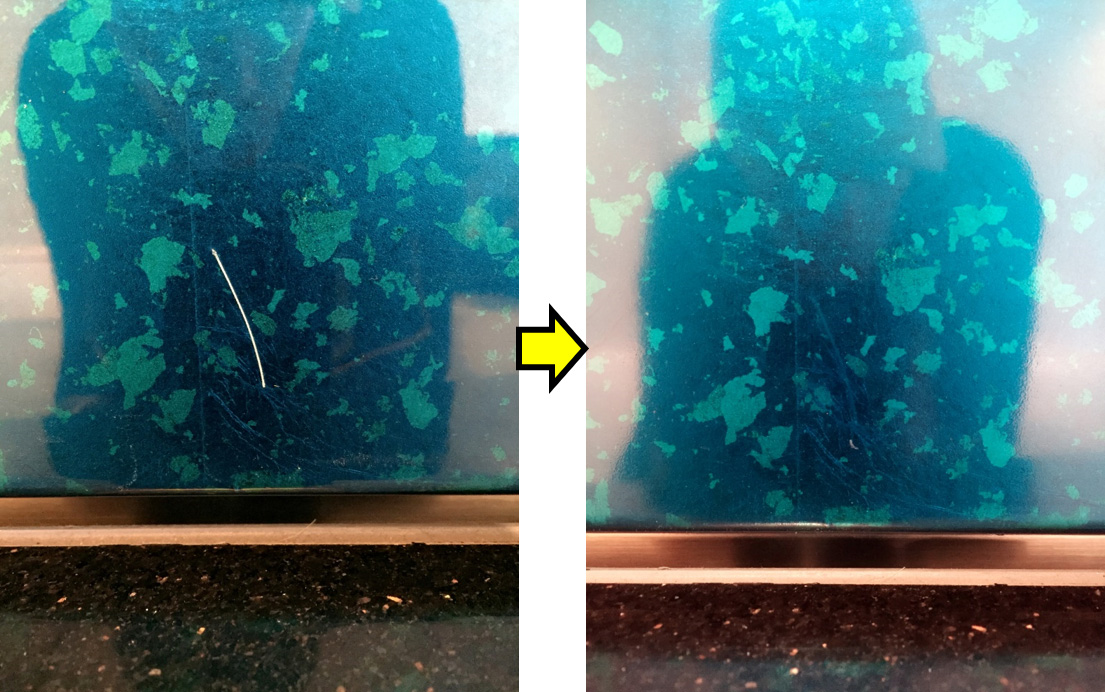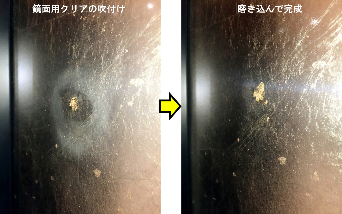 特製扉(鏡面仕上げ)に出来た線キズ