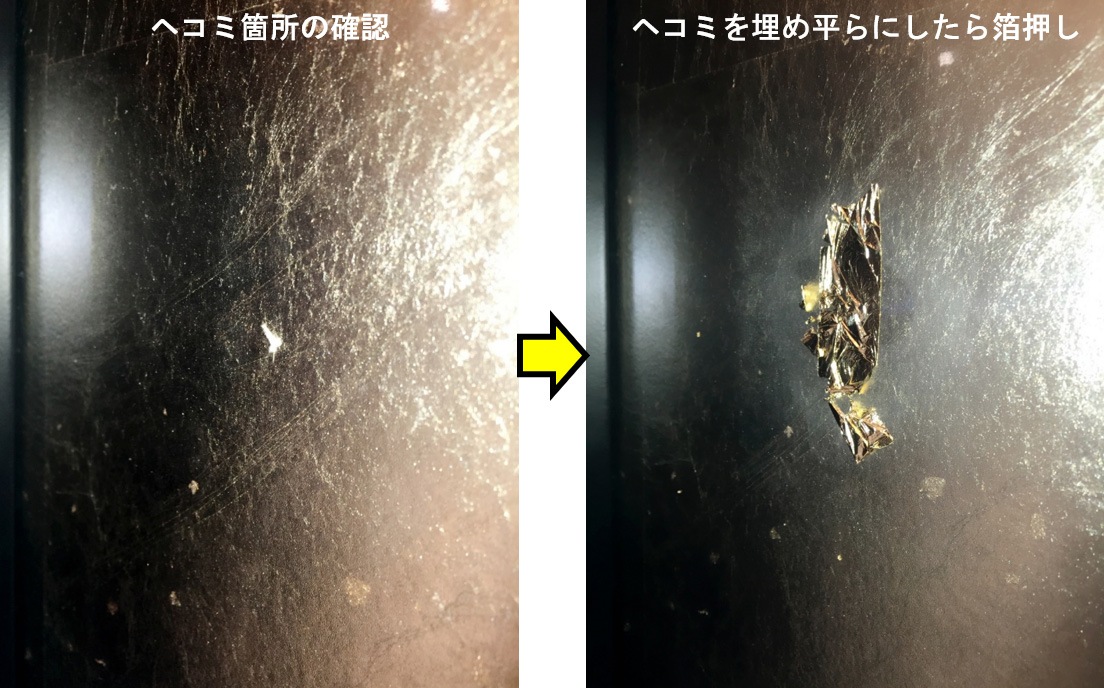 納骨堂の特製扉に出来てしまった線キズと凹みキズです。