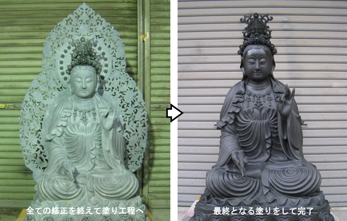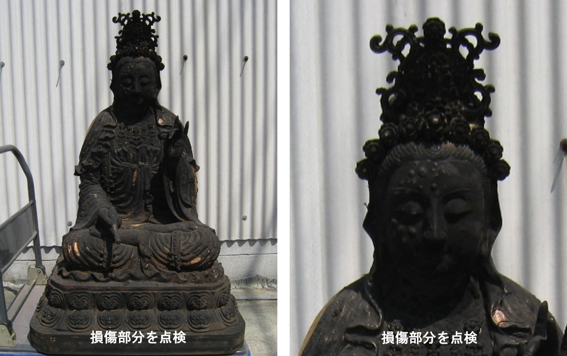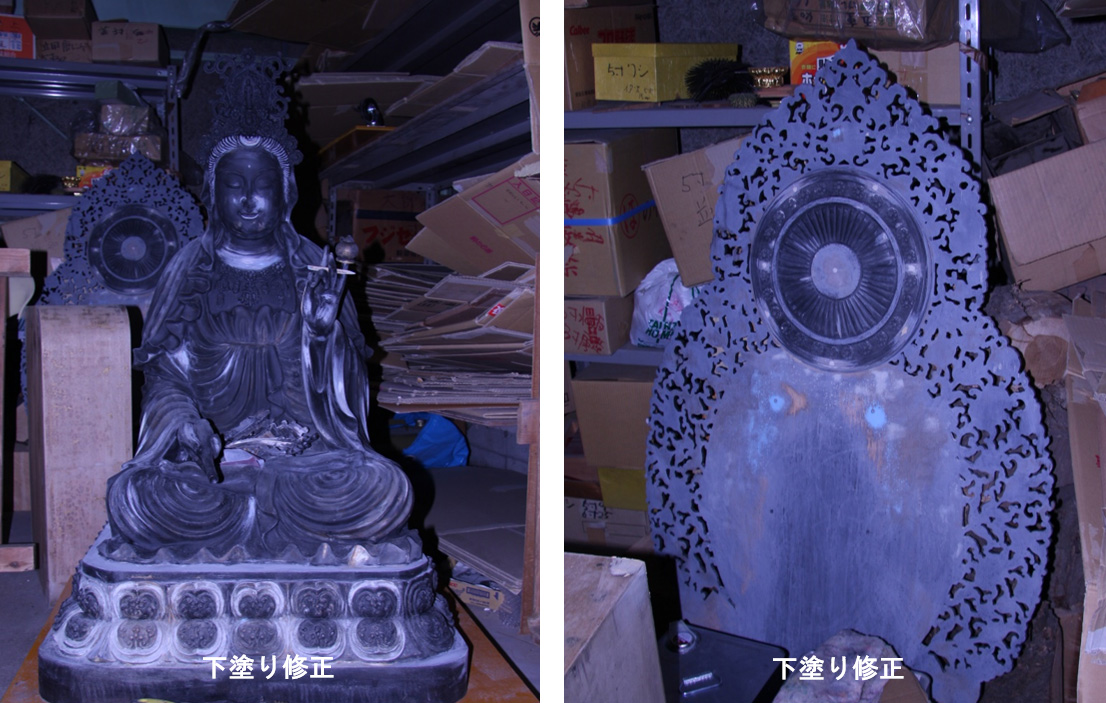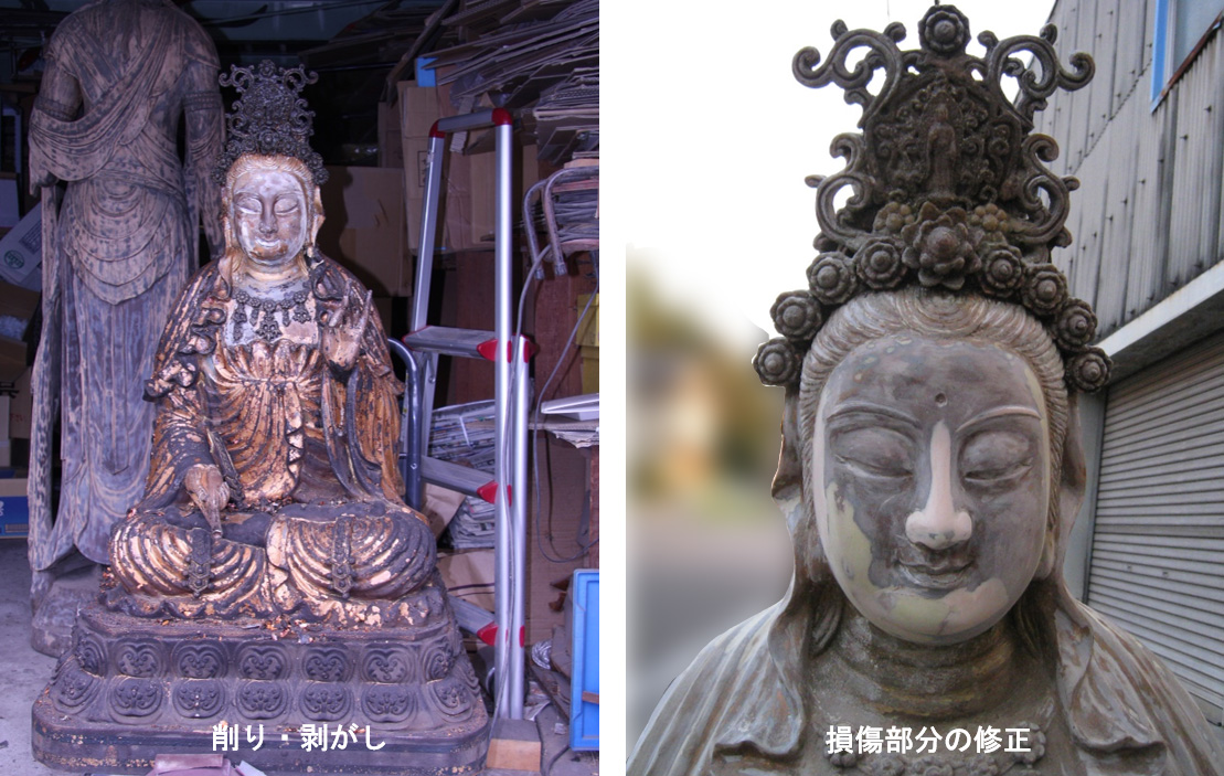 火災で焼け焦げた仏像の修復