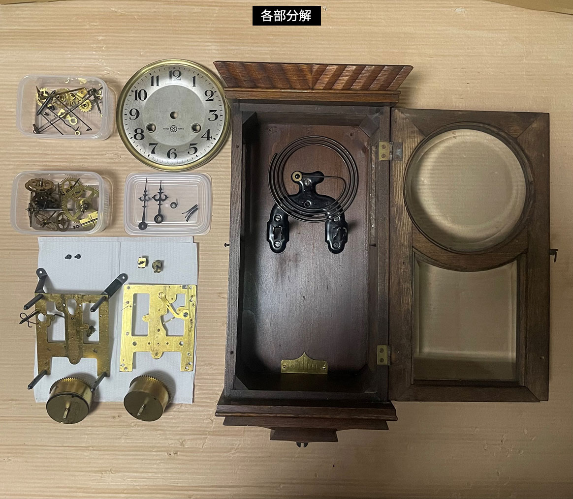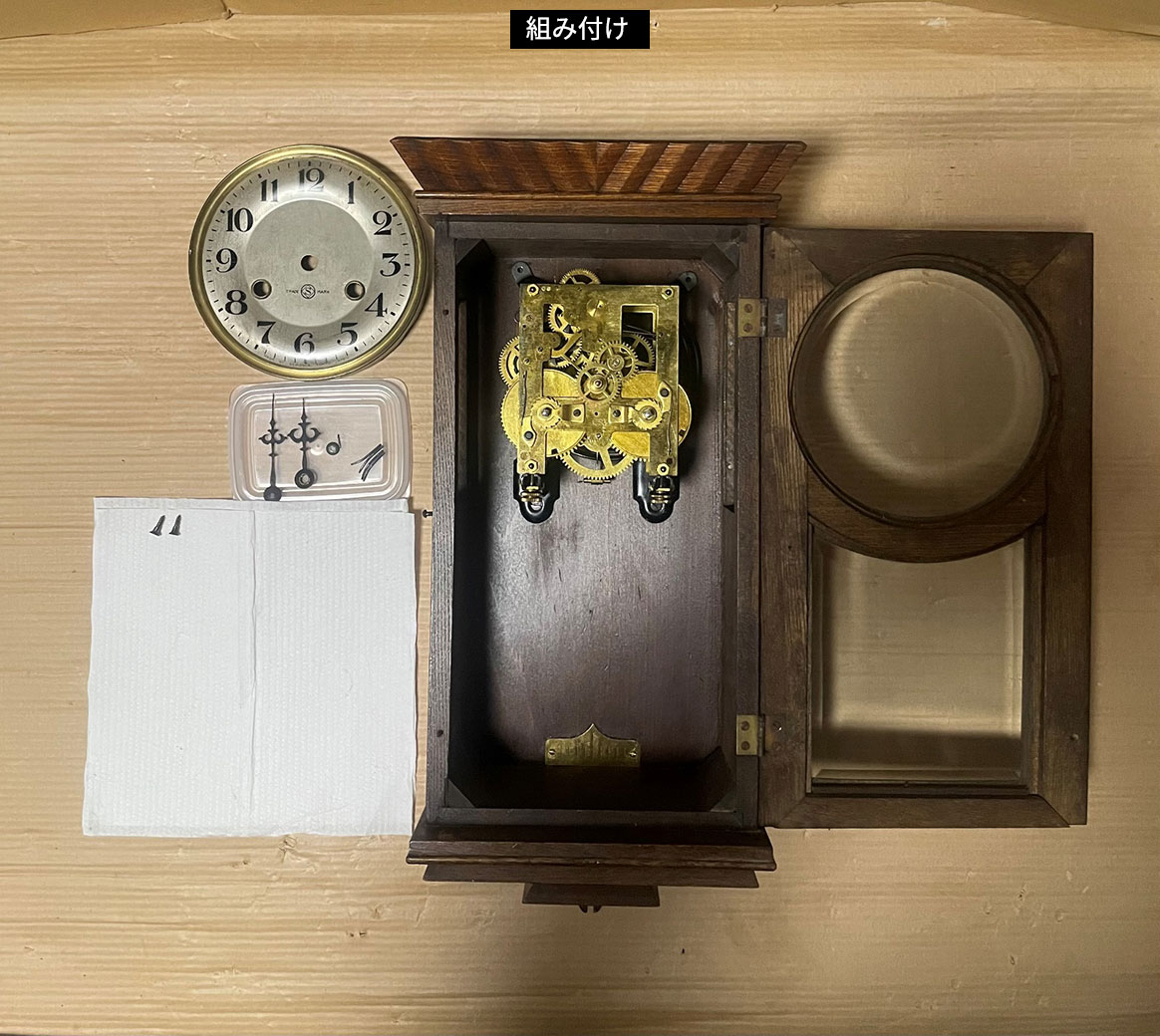 振り子を取り付けて、左右の振り幅、時報(時間の数だけ鳴る)、三十分打(30分に1回鳴る)、
