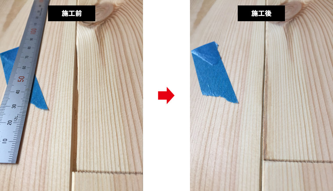 問題点として、気温や湿度、空調などの環境変化により木材は伸縮するので、そうした動きにも影響されない 工夫が必要になります。しかしながら、絶対に大丈夫とは言い切れません。木材の伸縮、反りと言った動く力は計り知れないものがあります。