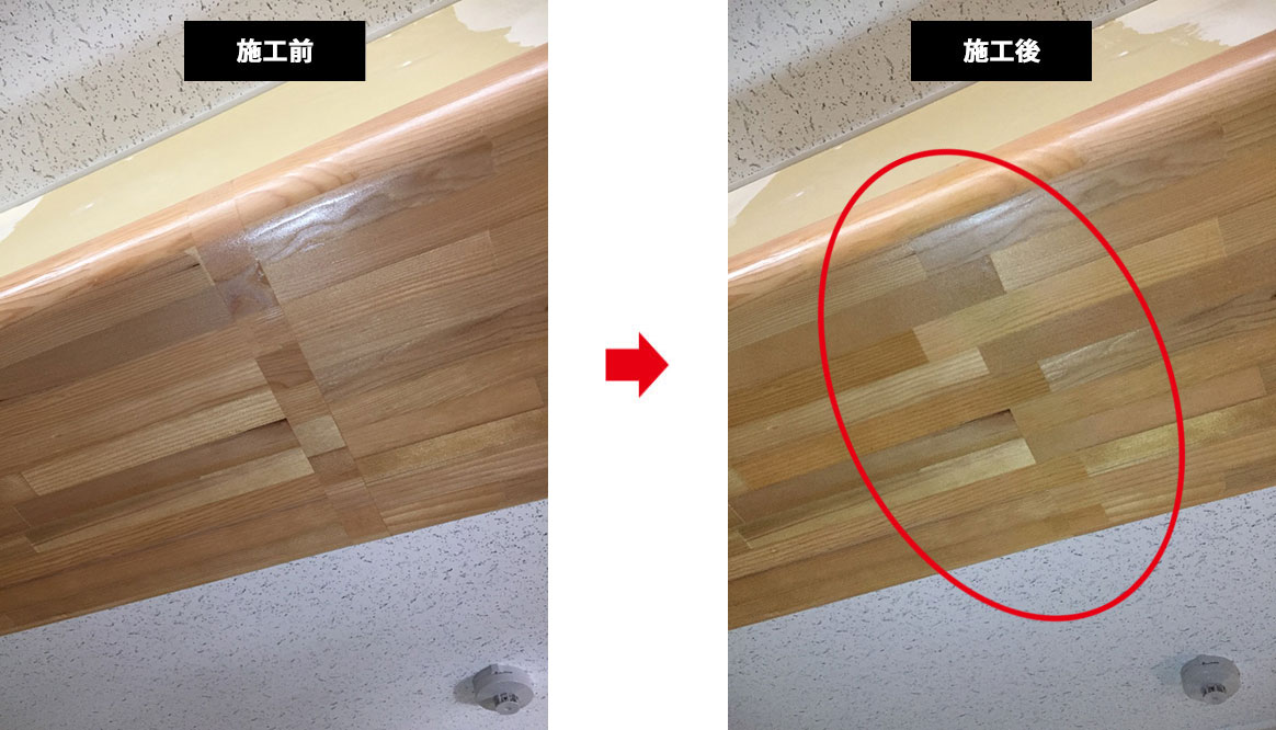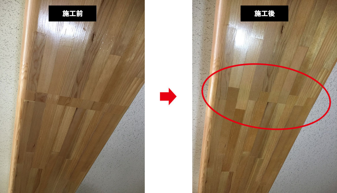 ※左側か右側のどちらかに色合いを合わせ、木目も繋げて継ぎ足した部分を積層にします。
