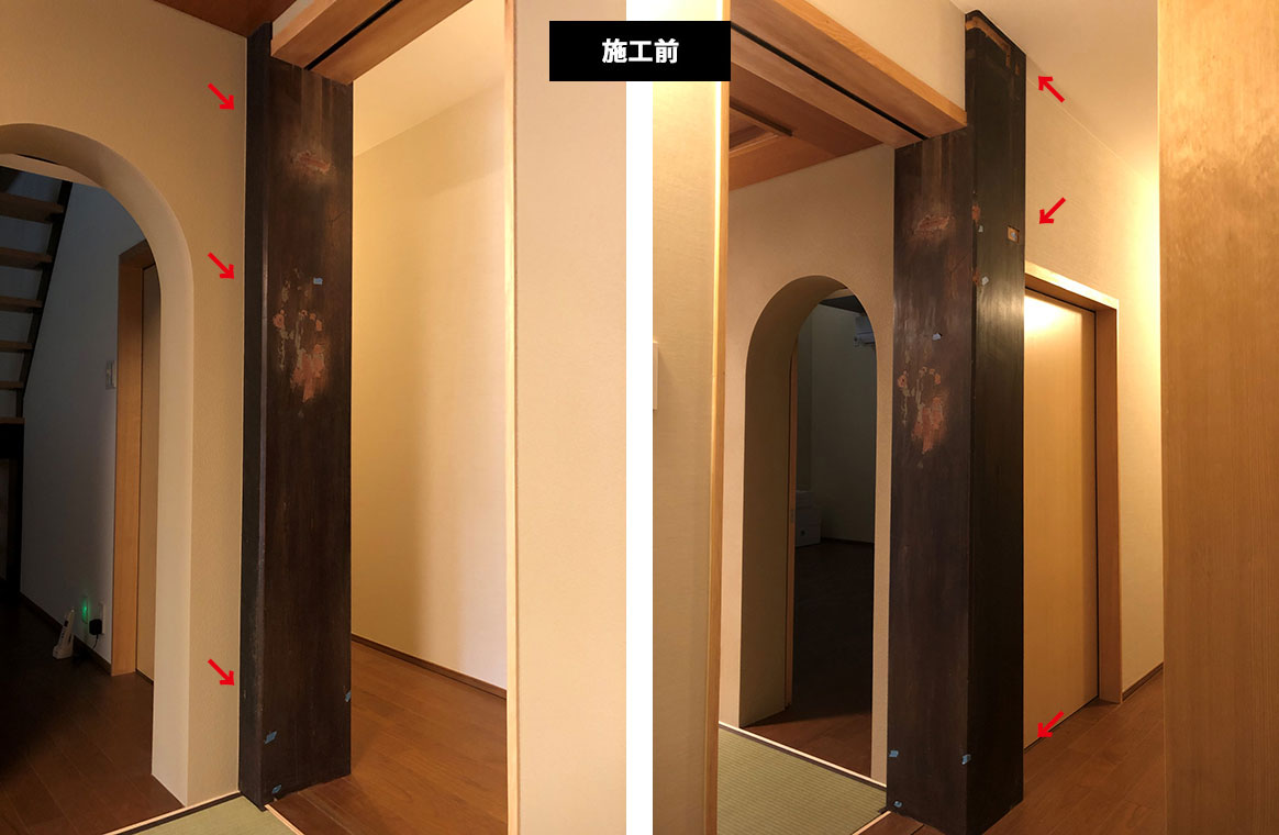 見苦しかった大黒柱ですが、引き締まった印象になりました。
