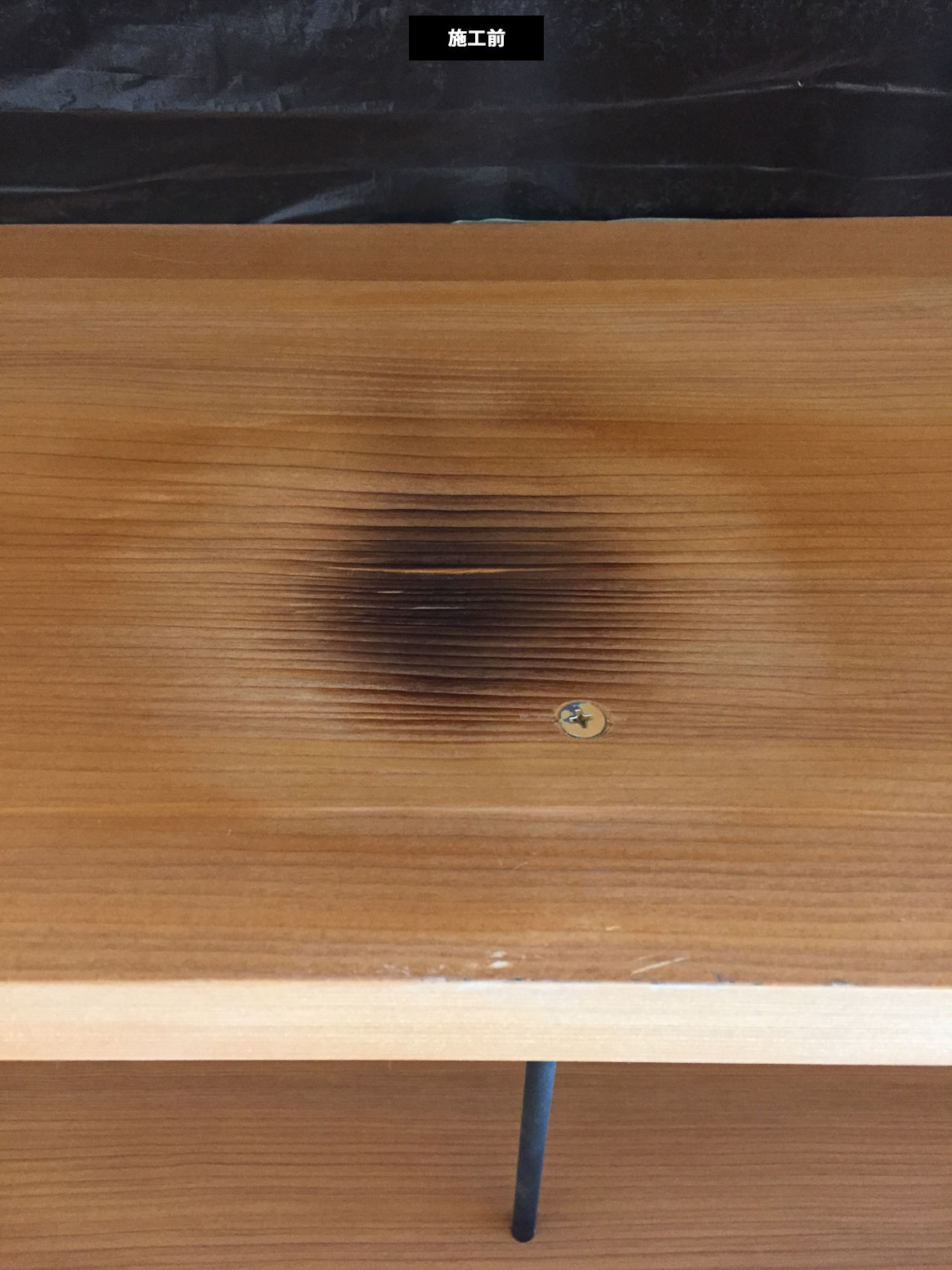 照明で使用した投光器の熱で焦げてしまい大きくへこんでいます。