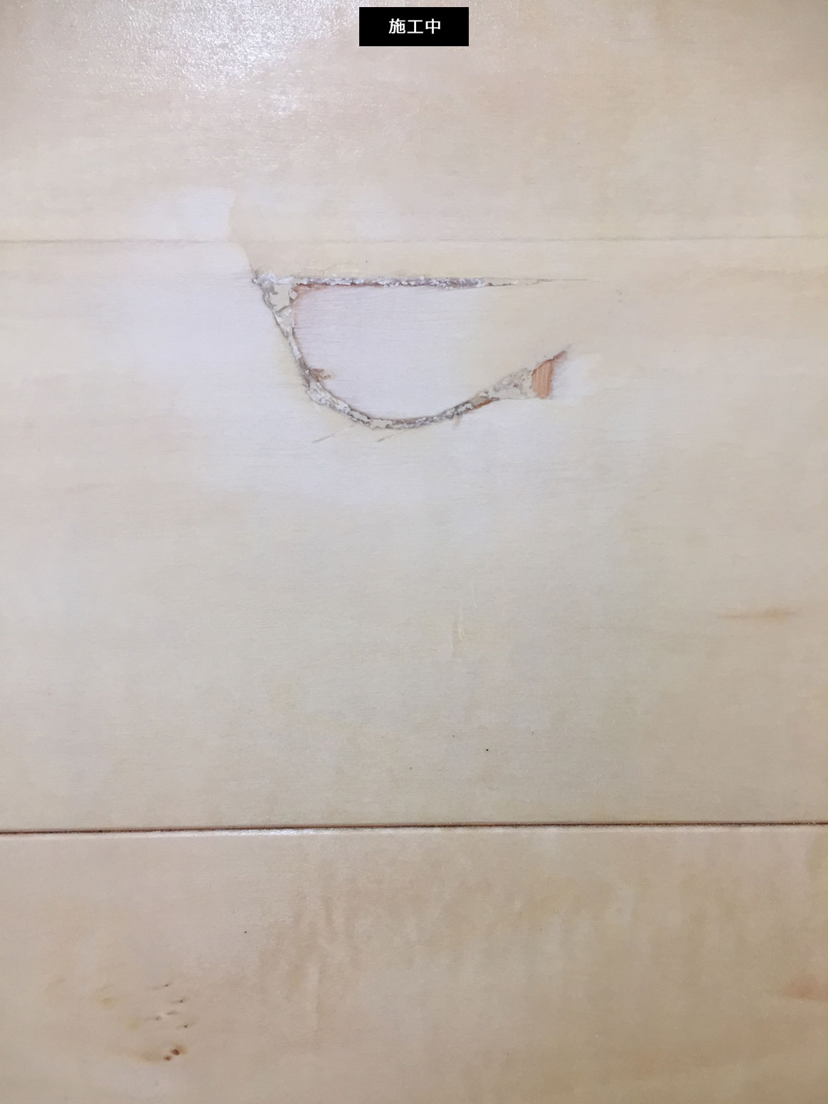 筆を使い 色合わせと木目を描き込み周囲と馴染ませます。
