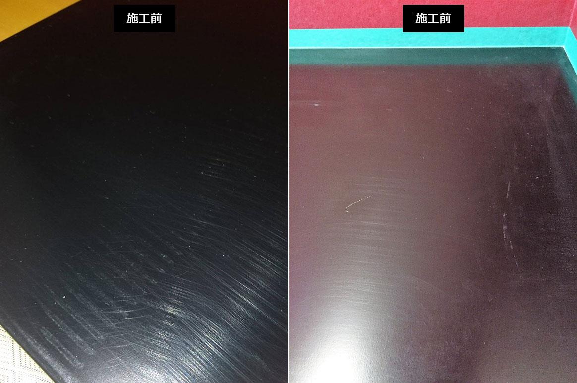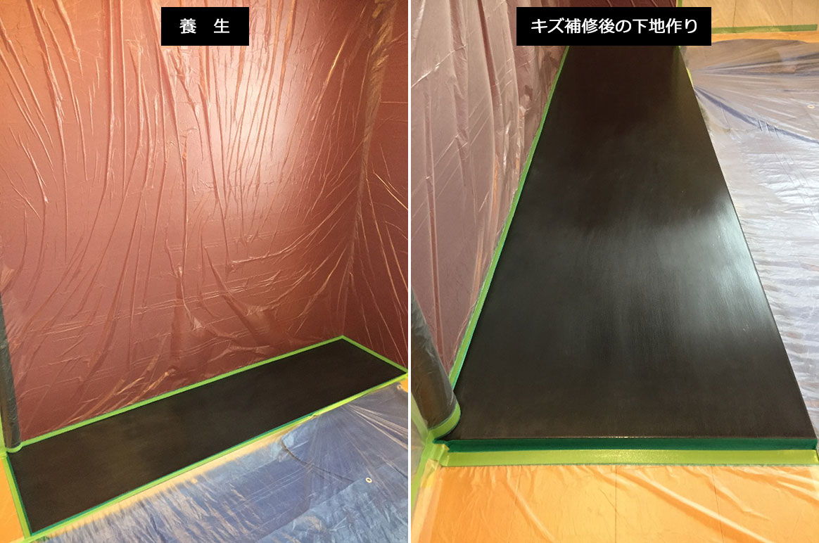 ヘコミキズ、ひっかきキズを直してから塗るために重要となる下地を半日ほどで作ります。下塗り、中塗り、上塗りをして前のものより光沢を上げ高級感を出しました。施工後の確認をしていただき完了です。