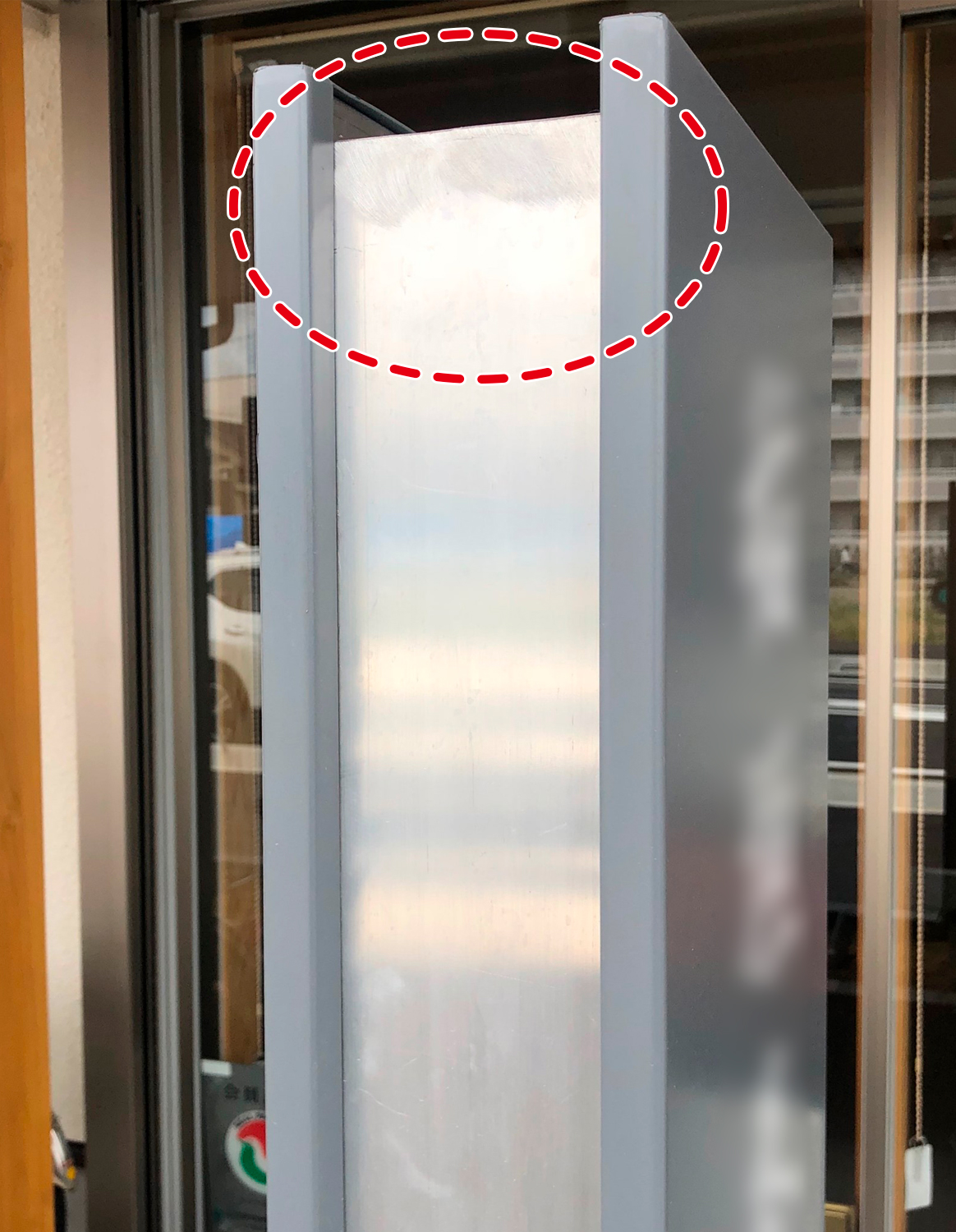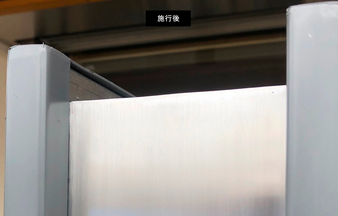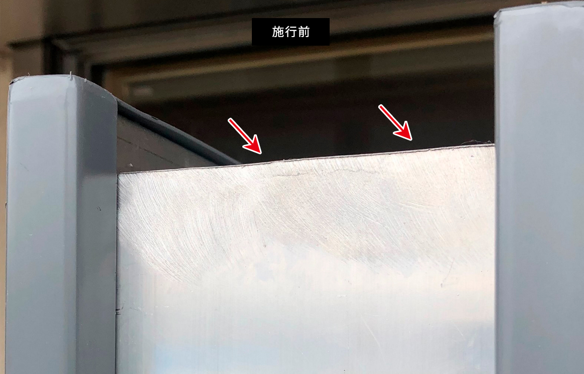 店舗用看板 金属の枠、カド(出隅)のキズ