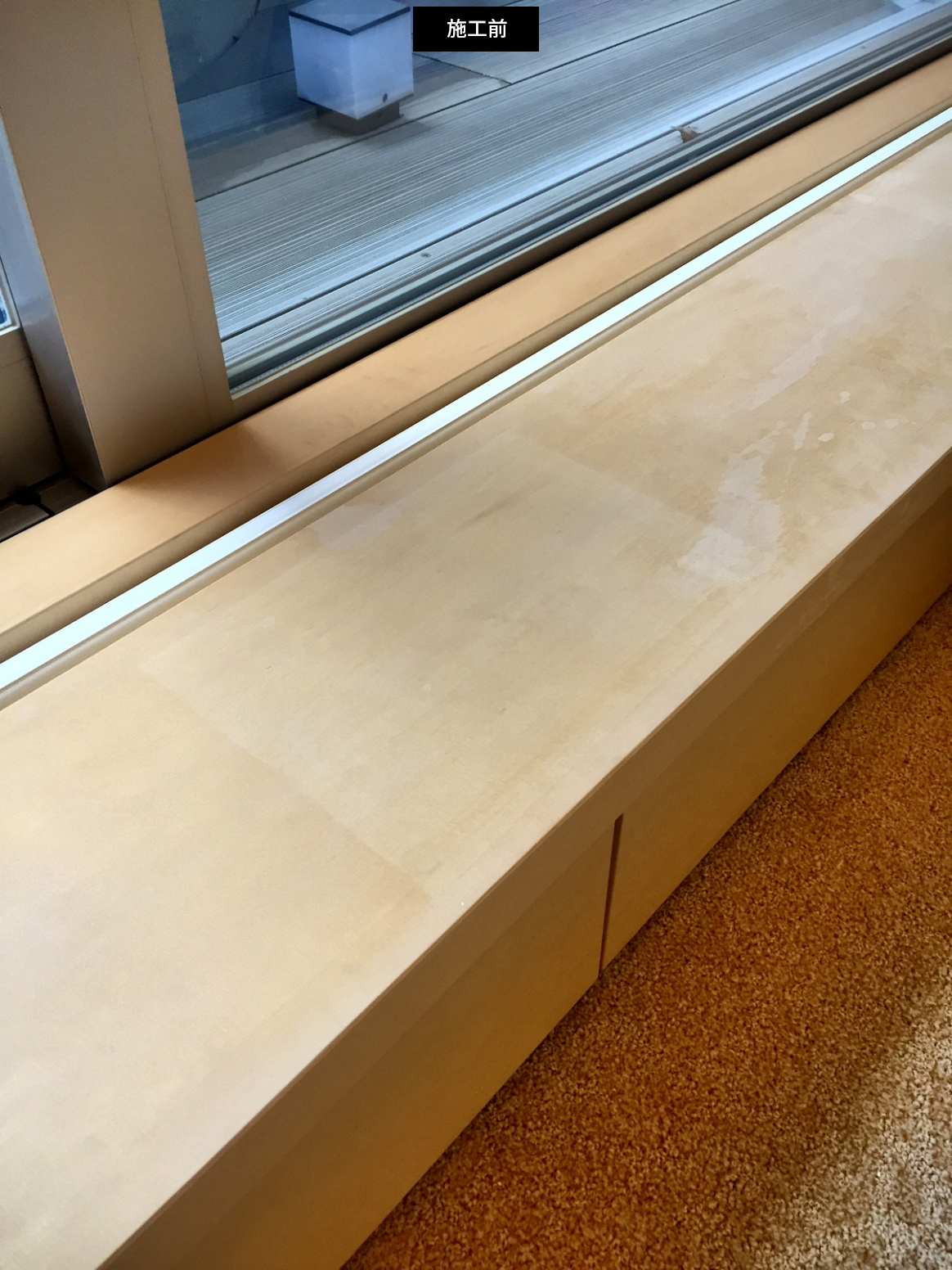 日焼けによる変色を白木復元施工