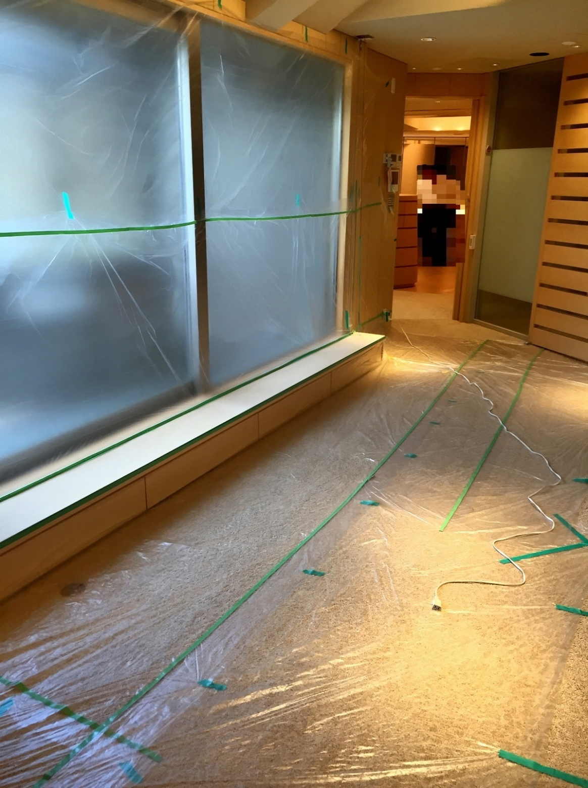 広範囲に養生を行います。