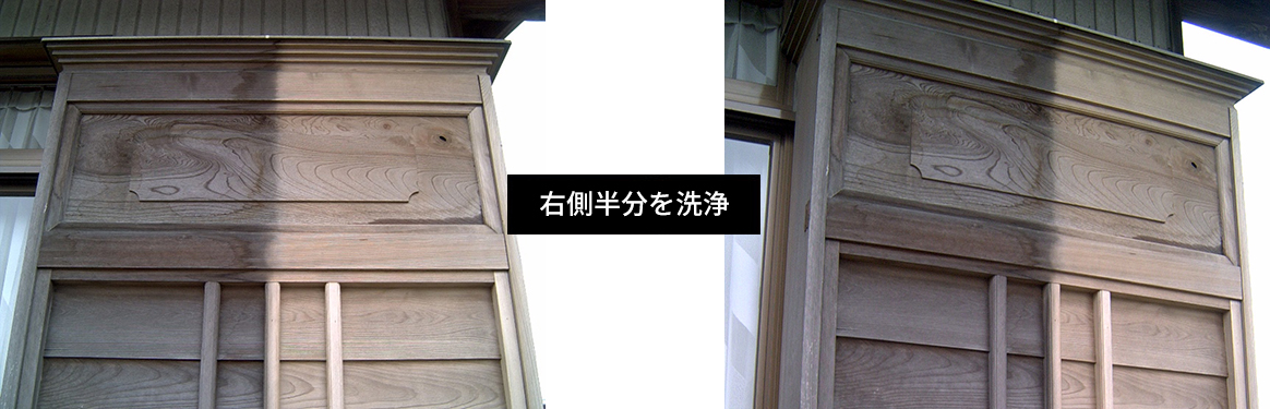 ●洗浄前と洗浄後を比較するために、右側半分を洗浄しました。