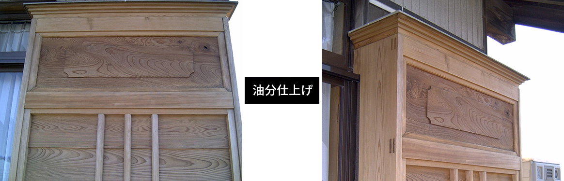 ●最終工程の『油分仕上げ』で、失われた油分を再び与えることで、木地の美しさを甦らせます。