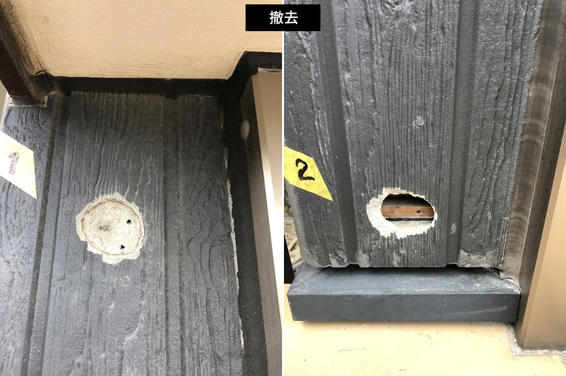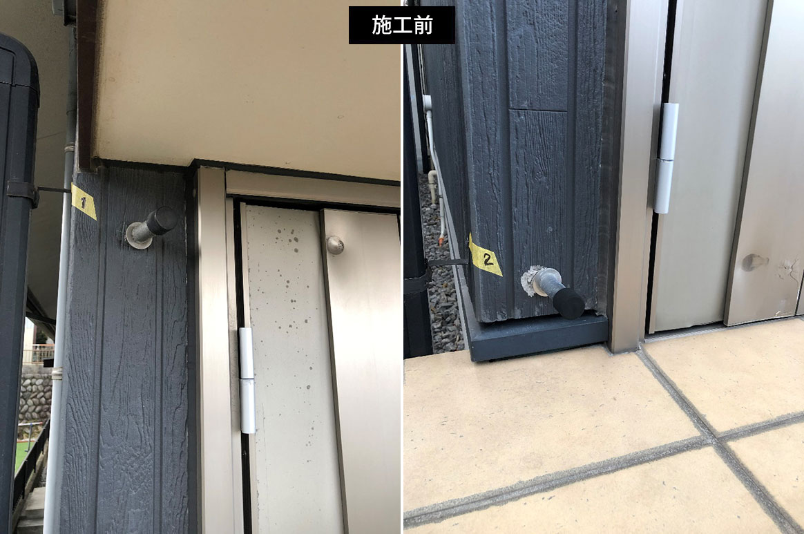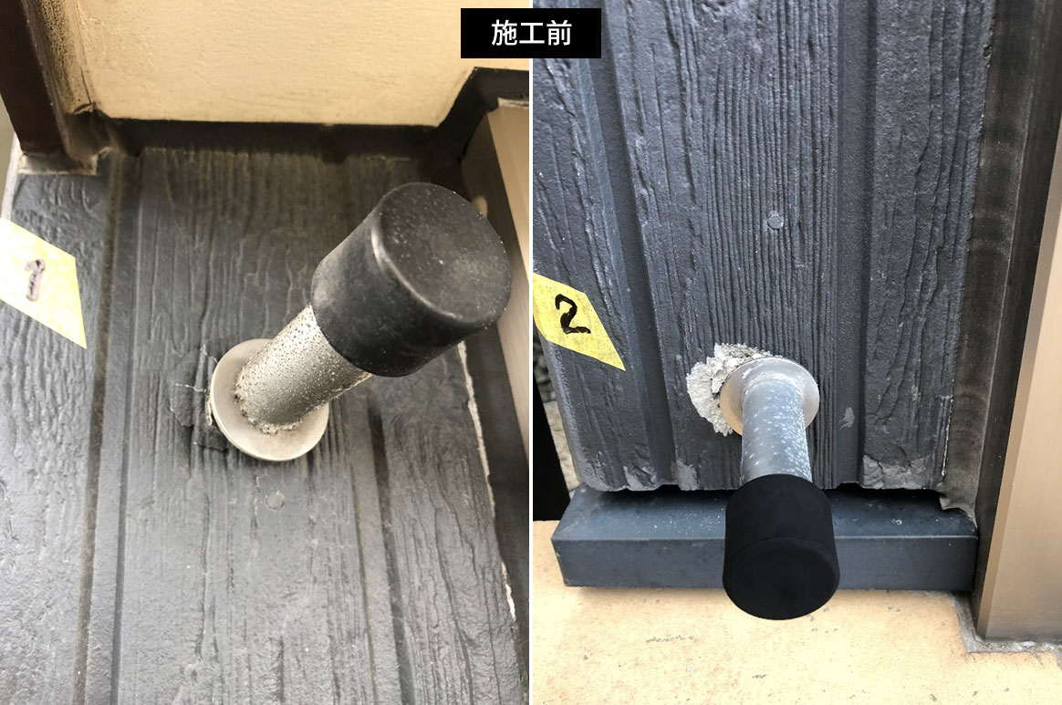 ドアストッパーが壁にめり込んでいるので、取り外して破損状況を確認します。