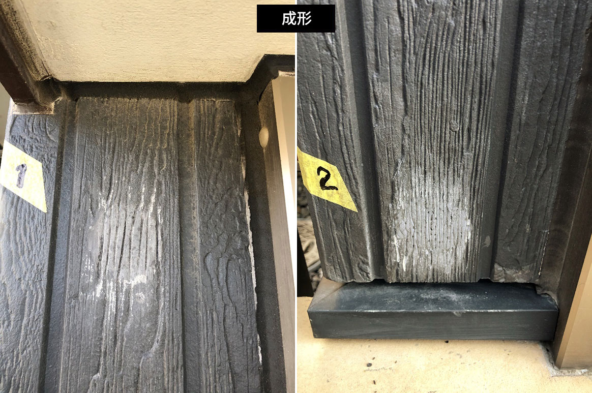 硬化後、成形しますが余りの硬さに彫刻刀をカナヅチで叩きながら木目柄を彫り込み復元し、調色をして3回塗装。 確認検査もOK。これならビスも問題なく使えます。